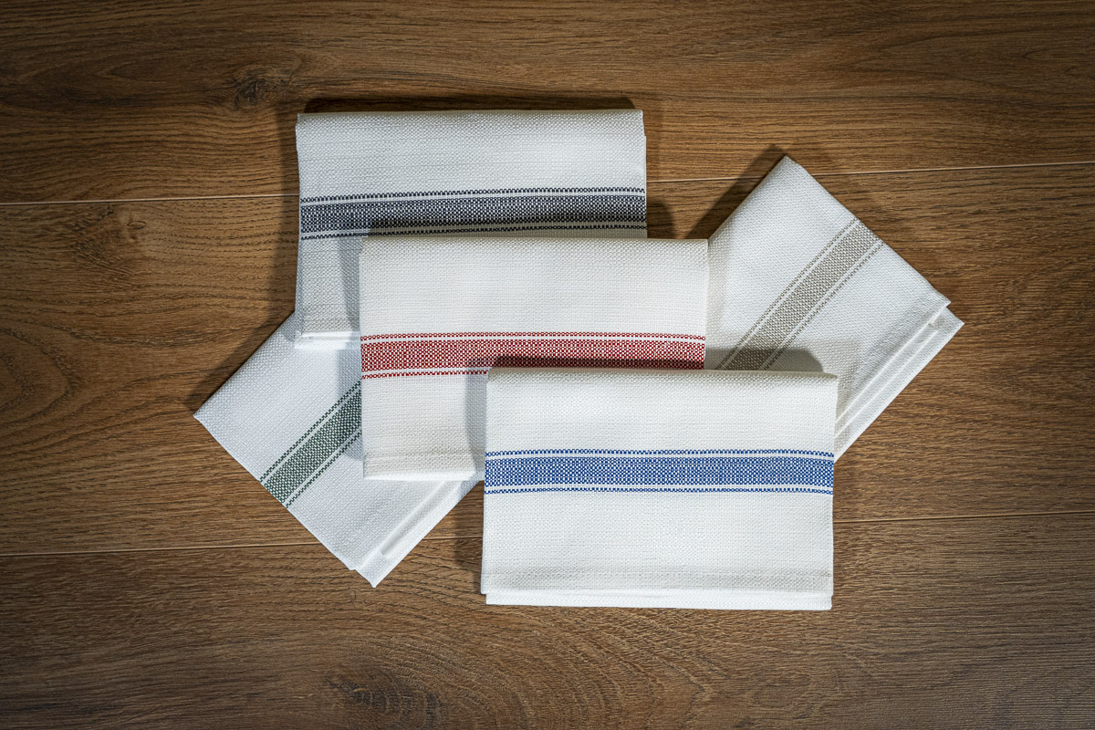 L’elemento distintivo è la banda decorativa che crea continuità visiva tra tovaglietta e tovagliolo, offrendo anche ampie possibilità di personalizzazione con il logo del cliente.
